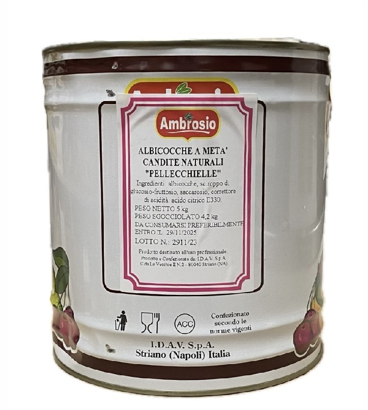 Albicocche a metà pellecchielle naturali candite kg.5 Ambrosio