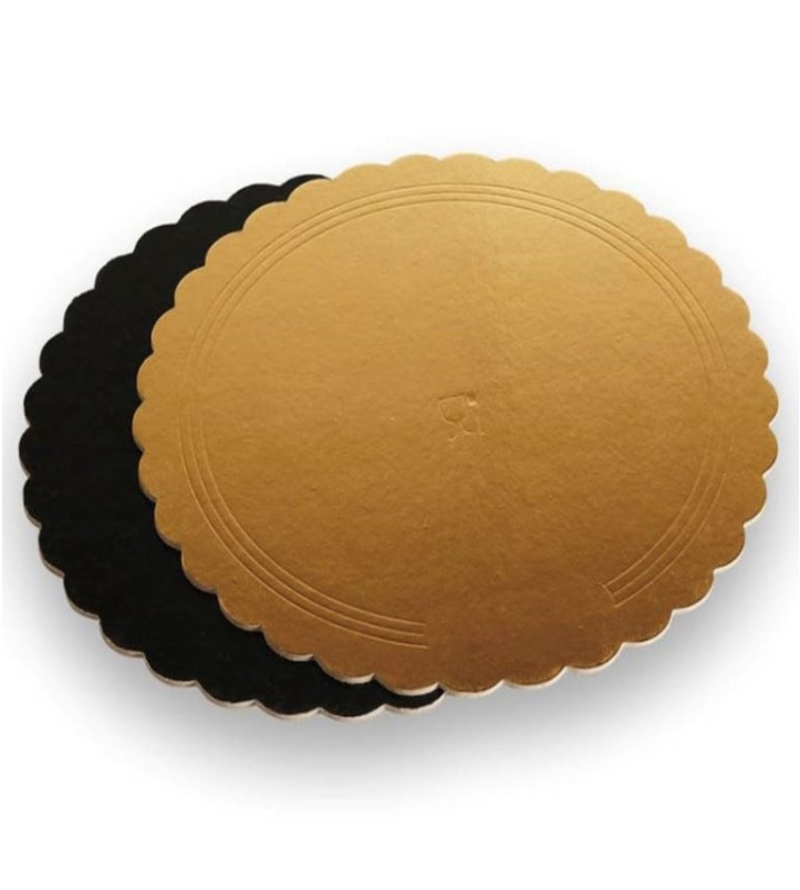 Piatto ala cartone oro/nero kg.10 tondo cm.20 produzione “Novaservice”